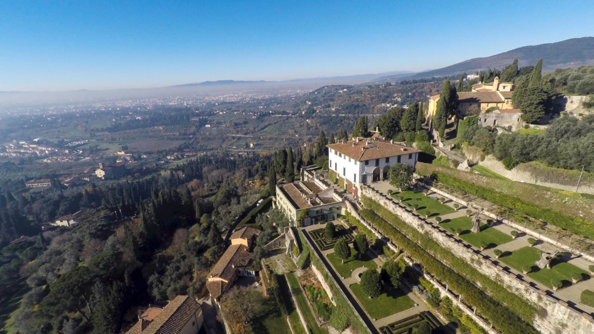 La Villa di Fiesole rappresenta una nuova concezione della residenza nobiliare, non più concepita come una struttura difensiva, ma come un luogo di svago e riflessione, immerso nella natura. Questo approccio innovativo è evidente nei giardini che circondano la villa, progettati per essere un’estensione naturale degli spazi interni. I giardini all’italiana sono disposti su diversi livelli, con terrazze che offrono vedute mozzafiato su Firenze e sulla campagna circostante. L’uso di vialetti, siepi e alberi secolari crea un ambiente ideale per passeggiate tranquille e momenti di contemplazione.